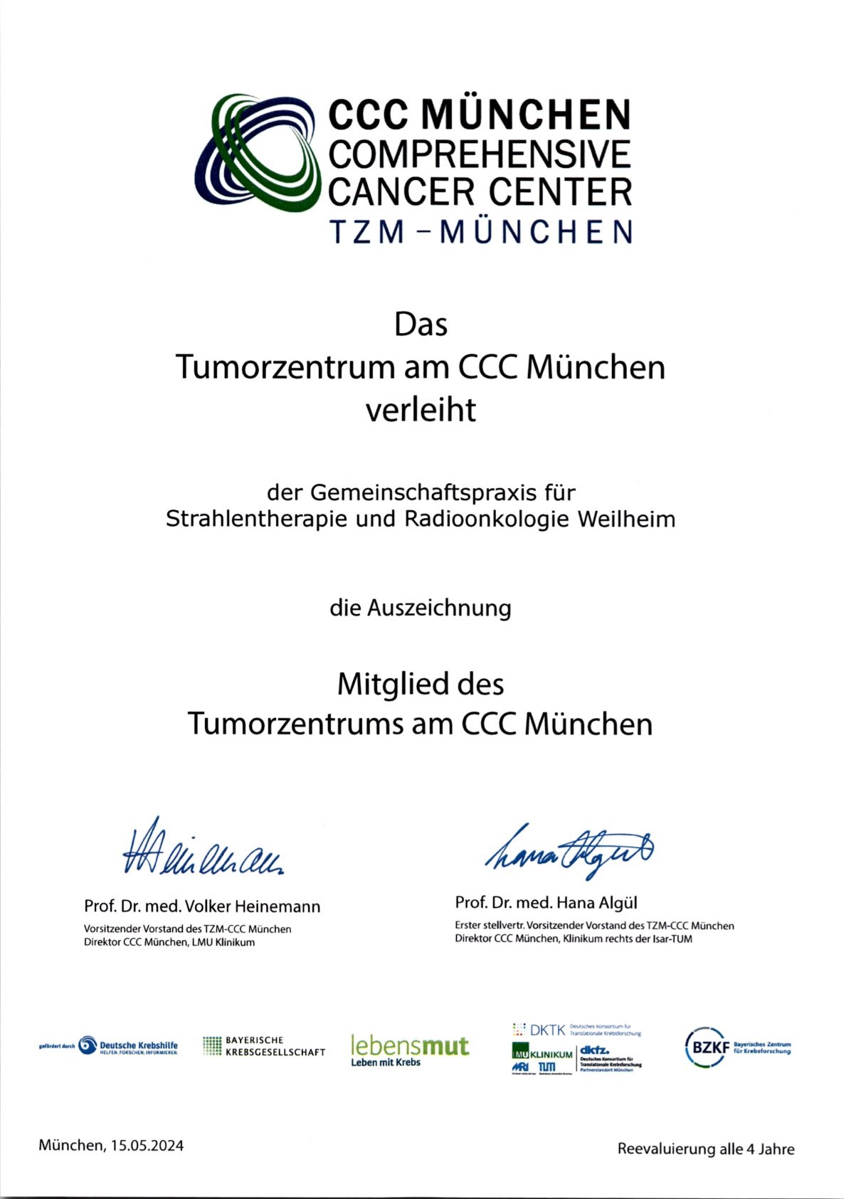 Jährliche Teilnahme an strahlentherapeutischen Kongressen und medizinphysikalischen Fortbildungen; Turnusgemäße Erneuerung der Fachkunde im Strahlenschutz